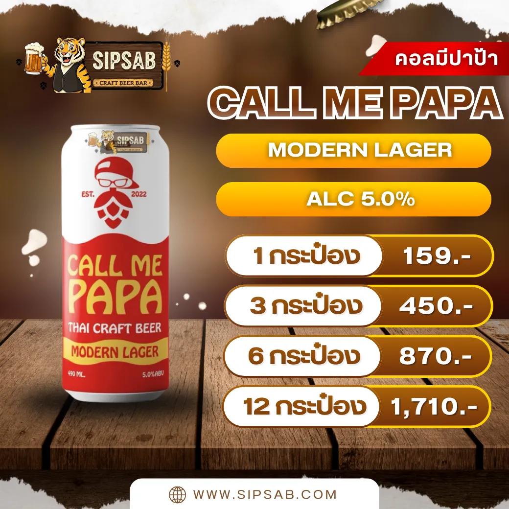 คอลมีปาป้า | CALL ME PAPA MODERN LAGER / ALC 5.0% – BEER TYPE: MODERN LAGER / ALC 5.0% – ปริมาณ : 490 ML – บรรจุภัณฑ์ : กระป๋อง – ALCOHOL : 5.0% จัดส่งเร็ว 3 วัน เท่านั้น